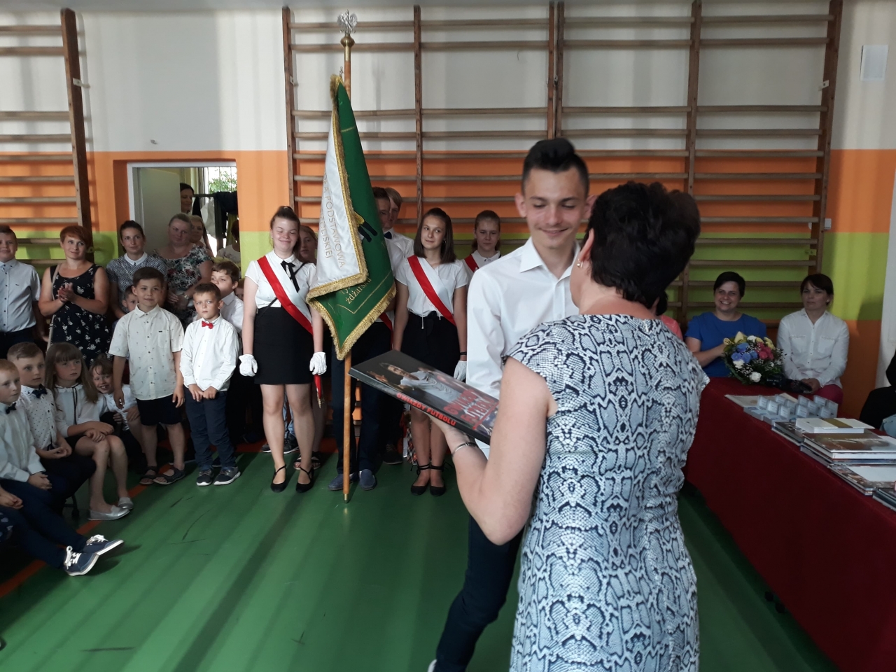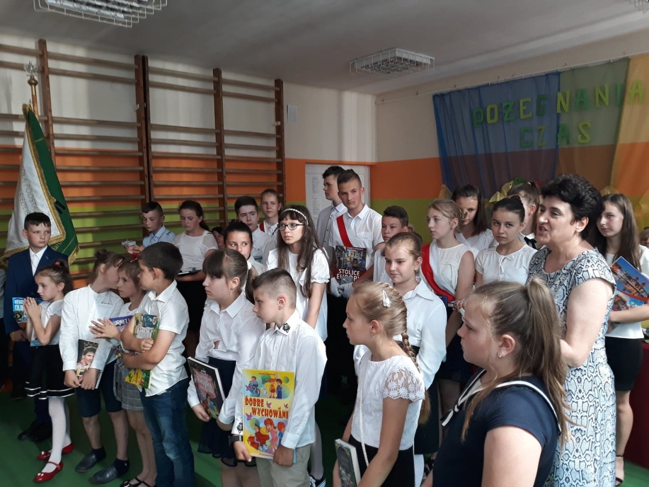 Uroczystość zakończenia roku szkolnego 2018/2019 w naszej szkole tradycyjnie rozpoczęła się mszą św. o godz. 9.00 odprawioną przez ks. proboszcza Krzysztofa Białkowskiego. Następnie wszyscy zgromadzeni przeszli do szkoły. Tam, w sali gimnastycznej nastąpił dalszy ciąg uroczystości.