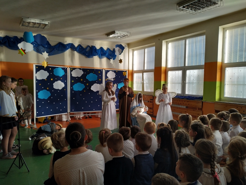 Jasełka, ciekawe w treści, pięknie przez uczniów przedstawione, przygotowały : pp. S. Maria, Alina Kijek, Ewa Długosz, Agnieszka Kaczmarczyk -Banach i Jolanta Kucińska.
